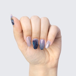 Our GLAM & GO gel nail wraps ensure that no matter how complex your chosen nail design, the application process remains incredibly simple. Our GLAM & GO gel nail wraps require no glue, base coat, or top coat—just peel them off the packaging, apply them to your nail, trim to size, cure twice, and voilà!